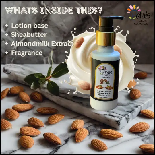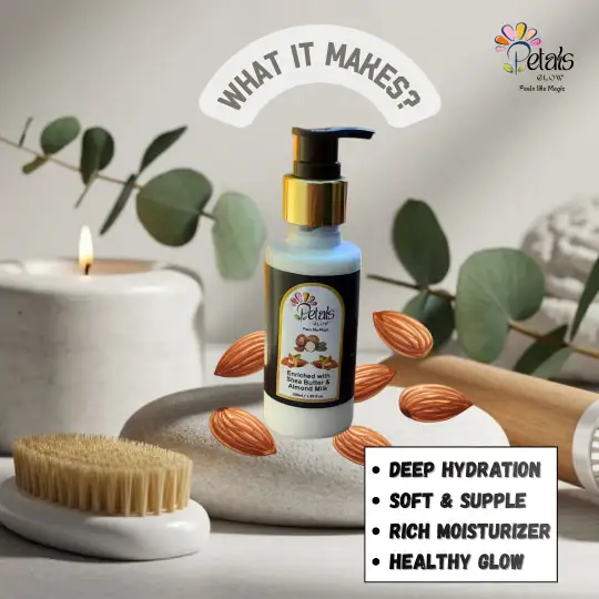 Experience the ultimate in skin hydration with our Body Lotion with Shea Butter and Almond Milk, and indulge your skin with every application!